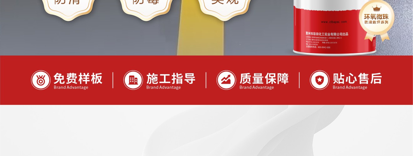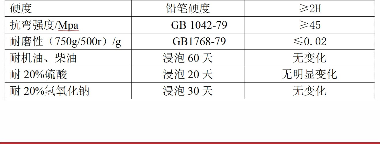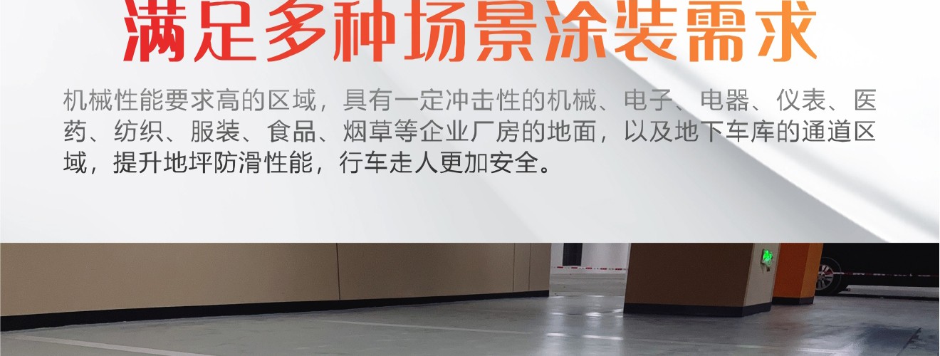 1、比一般薄涂型防滑材料的耐磨性好; 2、涂層呈現顆粒紋理,止滑效果好; 3、溶劑含量低,大大改善施工環境。 4、優異的抗劃傷能力;