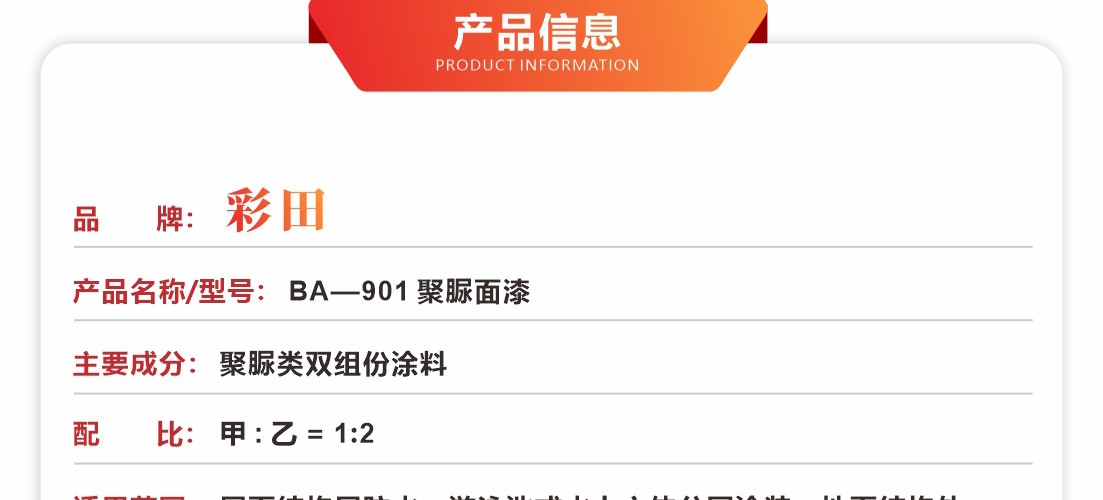 彩田BA-901M防腐聚脲中涂