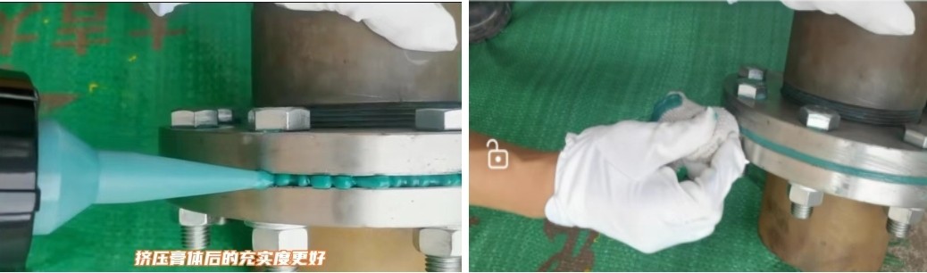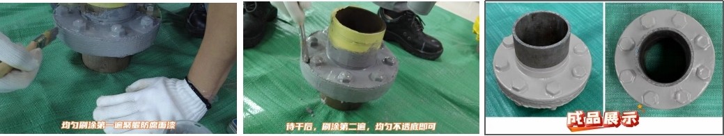 彈體防腐膏擠壓進(jìn)接駁口或者沿著法蘭壁面刮平;