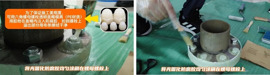 (4)螺母螺栓涂刷光固化防腐膠