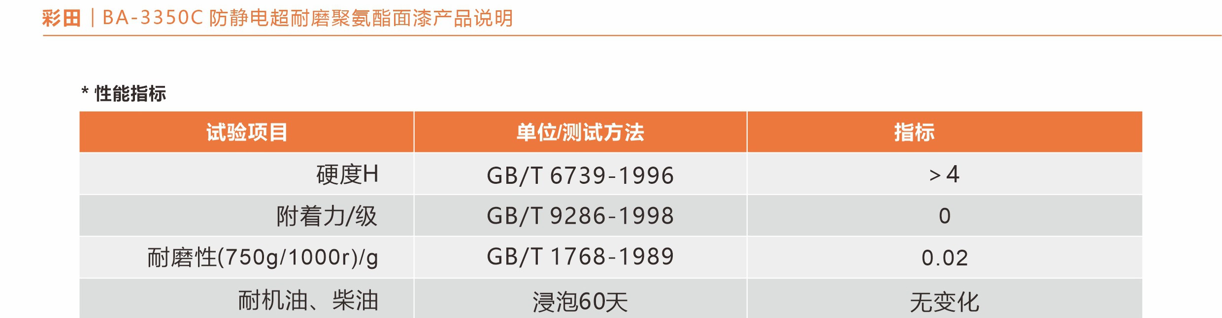 彩田-3350C防靜電超耐磨聚氨酯面漆
