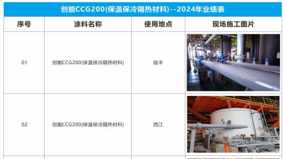 1、高效保溫:創能CCG200通過其獨特的微觀結構和熱反射機制,能夠有效地阻擋熱量的傳導和輻射,從而達到高效保溫隔熱的效果;底溫100℃時,1㎜厚涂層溫差可達7-9℃。