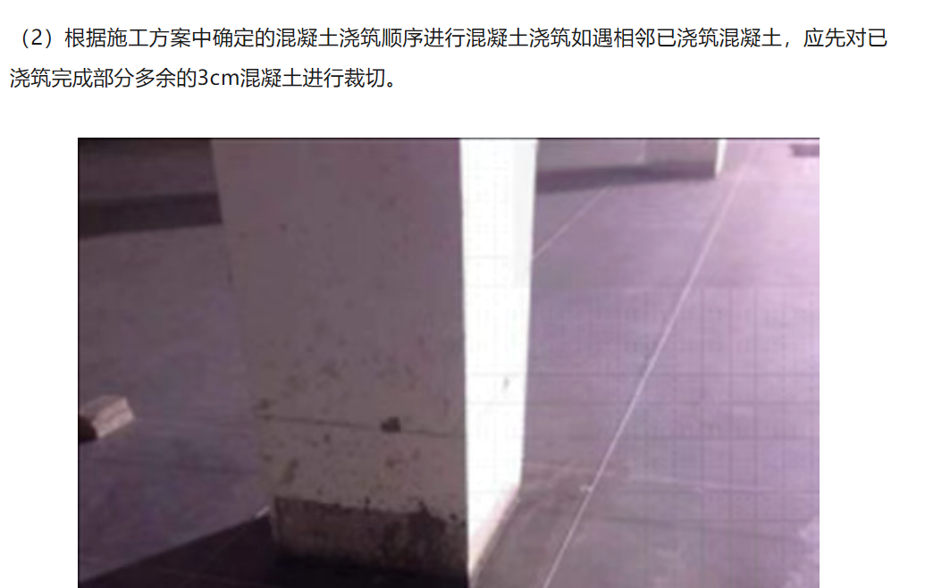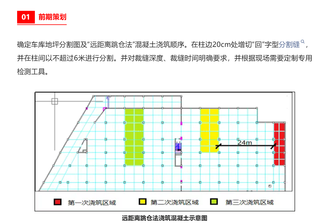 • 混凝土分割時根據柱間距離以不超過6m,柱(墻)邊20cm處分割一周。分割形成“大回路”,柱邊形成“回”字型分割。