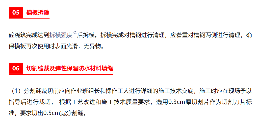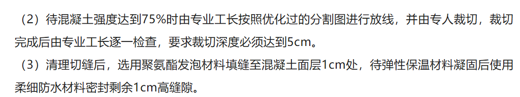 4、彈性保溫防水材料填縫:清理切縫后,選用聚氨酯發泡材料填縫至混凝土面層。確保混凝土基層切縫處與無切縫處溫度一致,減少因溫度造成混凝土不同程度膨脹收縮造成的裂縫,防水材料密封確保界面處理在無氧、干燥環境確保了界面劑的安定性。