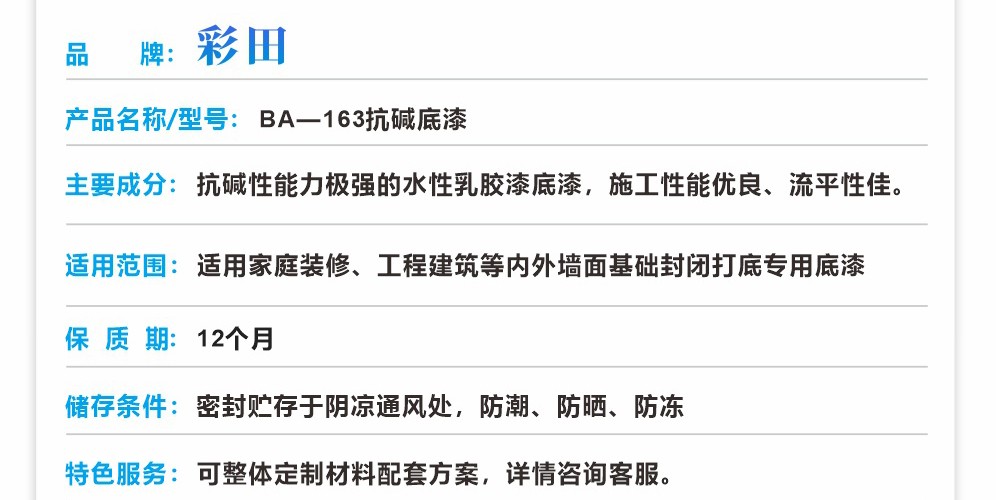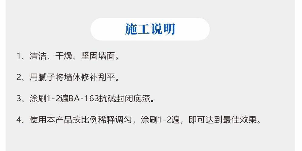 1、抗堿封閉底漆是一種抗堿性能力極強的水性乳膠漆底漆,施工性能優良、流平性佳。 2、墻體附著力極佳,防水份滲漏好,抗藻類滋生能力強,可精心呵護墻體。 3、專為家庭裝修、工程建筑等內外墻面基礎裝飾而設計。